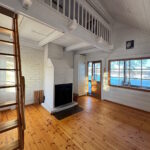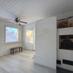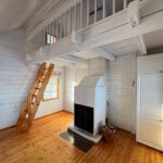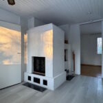 Olohuone on reilun kokoinen, ja talon sydämenä toimii iso varaava takka.